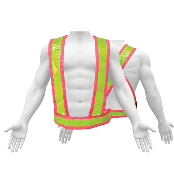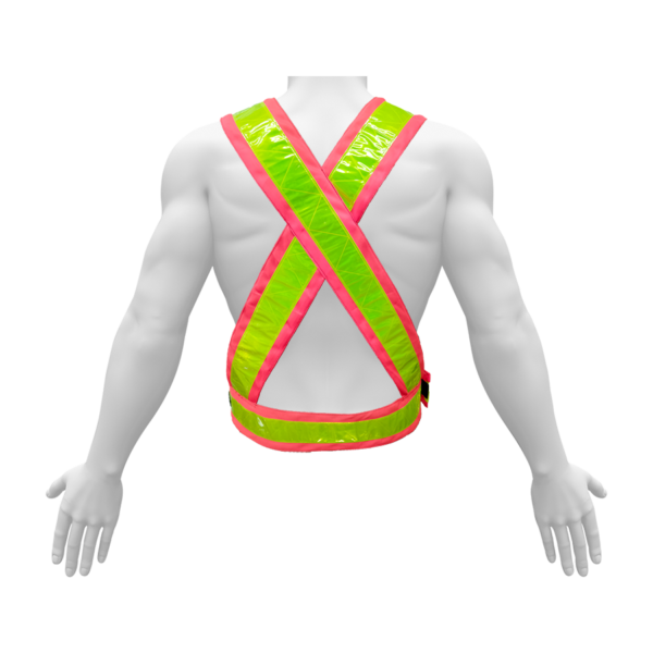 Cross belt made with mesh fabric, all sides open, with green reflective tape.